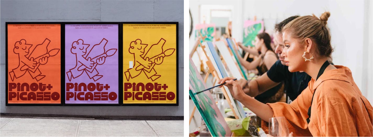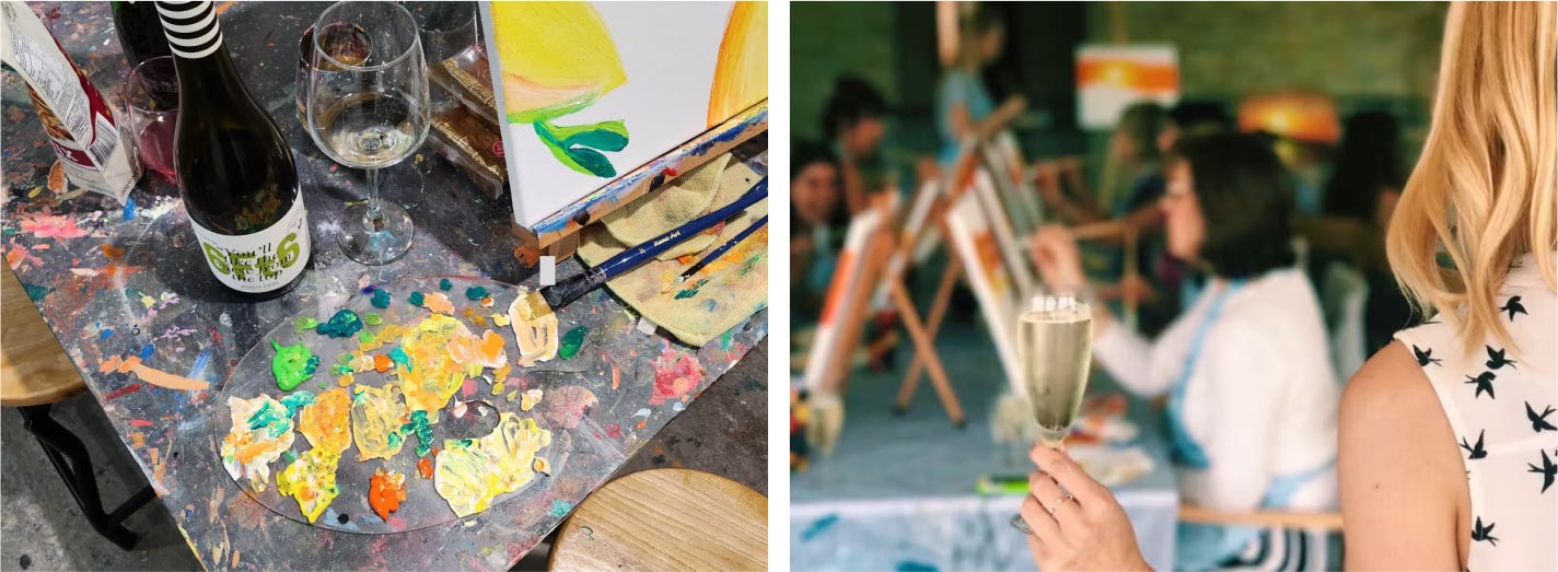 자유롭게 내면의 피카소를 분출하고 싶다면? Pinot & Picasso 예요. 재능 대신 재미를 강조하는 곳이죠. 음식, 동물, 풍경 등 그림 종류가 다양하고, 초보부터 전문가까지 수준에 따라 고를 수 있어요. 술은 현장에서 구매가 가능하고, 음식은 가져와 나눠 먹을 수 있고요. 자유로운 창작 분위기를 원하는 분들에게 추천하는 브랜드예요.