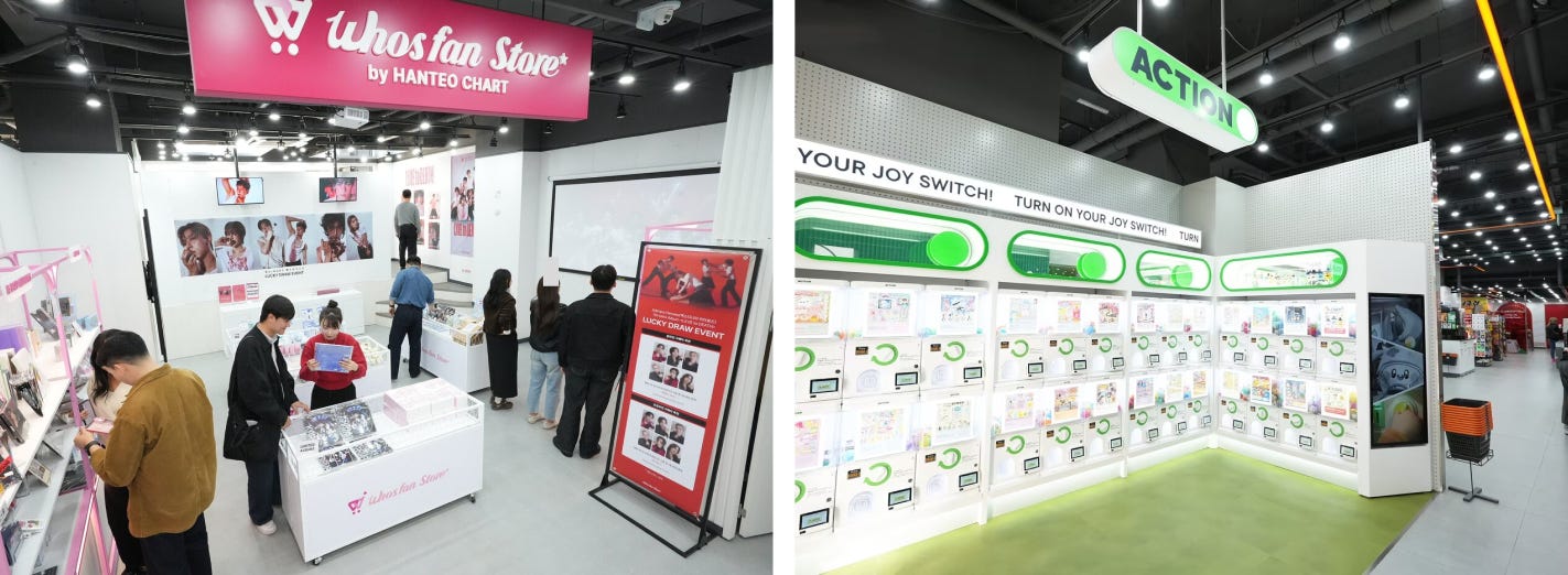 한편, 세븐일레븐은 K-팝에 집중했어요. 외국인 관광객이 많이 몰리는 명동 한복판에 110평 규모의 ‘뉴웨이브’ 매장을 열었어요. 이 매장에는 K-팝 팬덤존인 ‘후즈팬스토어’를 만들어, 세븐틴, NCT 등과 콜라보한 굿즈를 판매하고 있어요. 여기에다가 팝업존과 가챠존, 피규어 DIY존까지 있어, 편의점에서 원 없이 덕질을 즐길 수 있게 했죠.