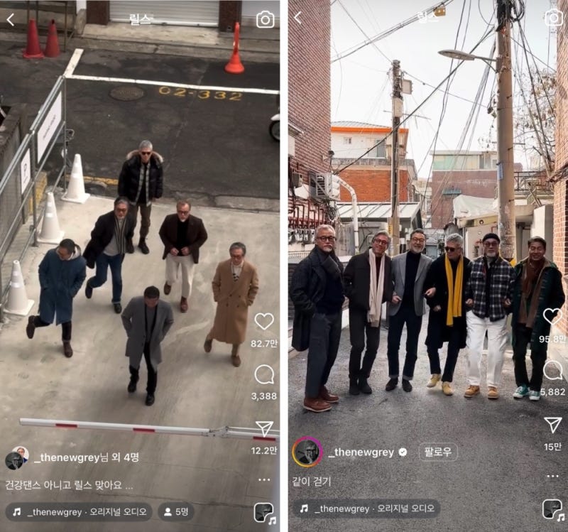 장정의 아저씨 여섯 명이 골목길에서 유행하는 틱톡 댄스를 춥니다. 아저씨들의 춤을 누가볼까 싶지만, 해당 영상은 인스타그램에서만 조회수 1,000만이 넘죠. 이들의 틱톡 누적 조회수는 1억 뷰가 넘고요. 댓글에서는 ‘이렇게 늙고 싶다’는 이야기와 함께, ‘아저씨즈’ ‘시니어 BTS’ 같은 별명이 붙습니다.