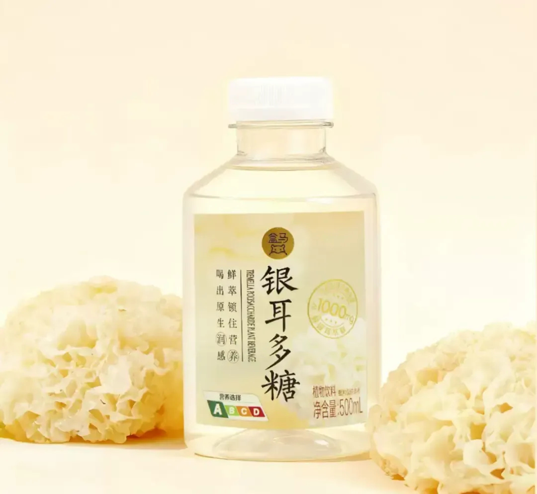 백마 탄 왕자가 독특한 컬러와 네이밍으로 화제가 되었다면, 그 뒤를 바짝 쫓는 신제품도 인기예요. 이번에도 건강에 좋은 음료지만, 접근법이 달라요. 이름부터 ‘흰목이버섯 다당류(银耳多糖)’라, 백마 탄 왕자와는 다른 결이죠. 정확한 뜻은 몰라도, ‘다당류’라는 이름에서 당류가 함유된 음료라고 짐작할 수 있어요.