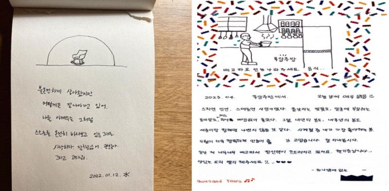 혼자 청소 하러 갔다가 방명록을 펼쳐보면, 눈물을 쏙 뺄 정도로 진실된 이야기들이 적혀 있어요. 어디 가서 쉽게 말할 수 없는, 어느 기업이 얼마의 돈을 줘도 살 수 없는 진실된 내면의 이야기들이죠. 어떤 젊은 남편은 출산한 지 얼마 안 된 아내를 위해서 반나절만이라도 쉬고 오라고 후암별채를 예약해줘요.