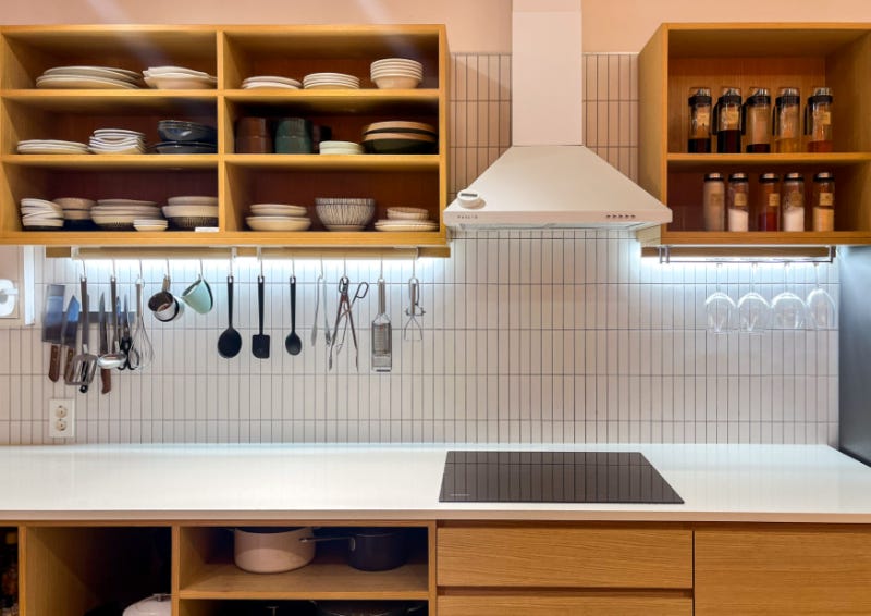 이들을 배치하는 것도 아름답기보다 편리하기를 택했어요. 예를 들어 후암주방의 모든 장이 오픈형이에요. 문이 닫혀서 가재들이 안 보이는 게 사진 찍기에는 깔끔하고 좋아요. 하지만 처음 방문한 사람도 어떤 가재가 어디에 있는지 한눈에 확인할 수 있도록, 모든 수납공간을 오픈한 거죠.