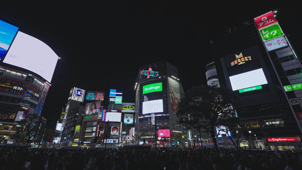 여기에, 시부야를 대표하는 스크램블 교차로 대형 스크린에서는 듀오마트 홍보 영상을 동시에 송출하는 ‘스크린 잭(Screen Jack)’이 진행됐어요. 스크린 여러 대를 일정 시간 점령해 ‘듀오마트’ 영상이 재생되면서, 듀오의 얼굴이 사방에 등장했죠. 짧은 순간이지만, 시부야 한복판이 듀오로 덮이며 행인들은 시선을 빼앗겼어요.