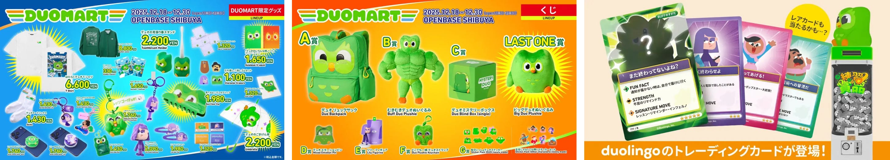 그런데 연말 홀리데이 시즌의 정점인 12월 18일부터 30일까지, 도쿄 시부야 한복판에 팝업을 연 공부 앱이 있어요. 약속과 휴가 준비만으로도 바쁜 이 시기에, 굳이 오프라인에 등장한 거죠. 이런 이례적인 선택을 하는 학습 앱은 ‘듀오링고’예요. 듀오링고가 일본 최초로 연 팝업의 이름은 ‘듀오마트(DUOMART)’. 편의점 형태의 팝업 스토어죠. 도대체 왜 하필 연말에, 어째서 편의점을 연 걸까요?