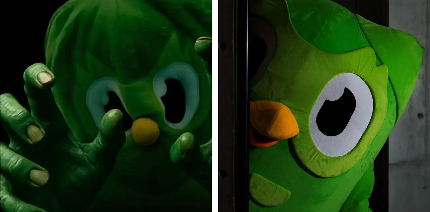 그렇지만 연말에 학습 앱이 팝업을 연다고 사람들이 찾아올까요? 사실, 듀오링고에는 믿는 구석이 있어요. 듀오링고의 상징인 초록 부엉이 ‘듀오’의 팬덤이죠. 듀오는 학습 화면에서는 귀여운 표정을 짓고 응원하지만, 앱을 열지 않으면 끈질기게 알림을 보내는 걸로 알려져 있어요. 또, SNS에서는 각종 밈에 탑승해 ‘나사가 조금 빠진 캐릭터’로 인기를 끌죠.