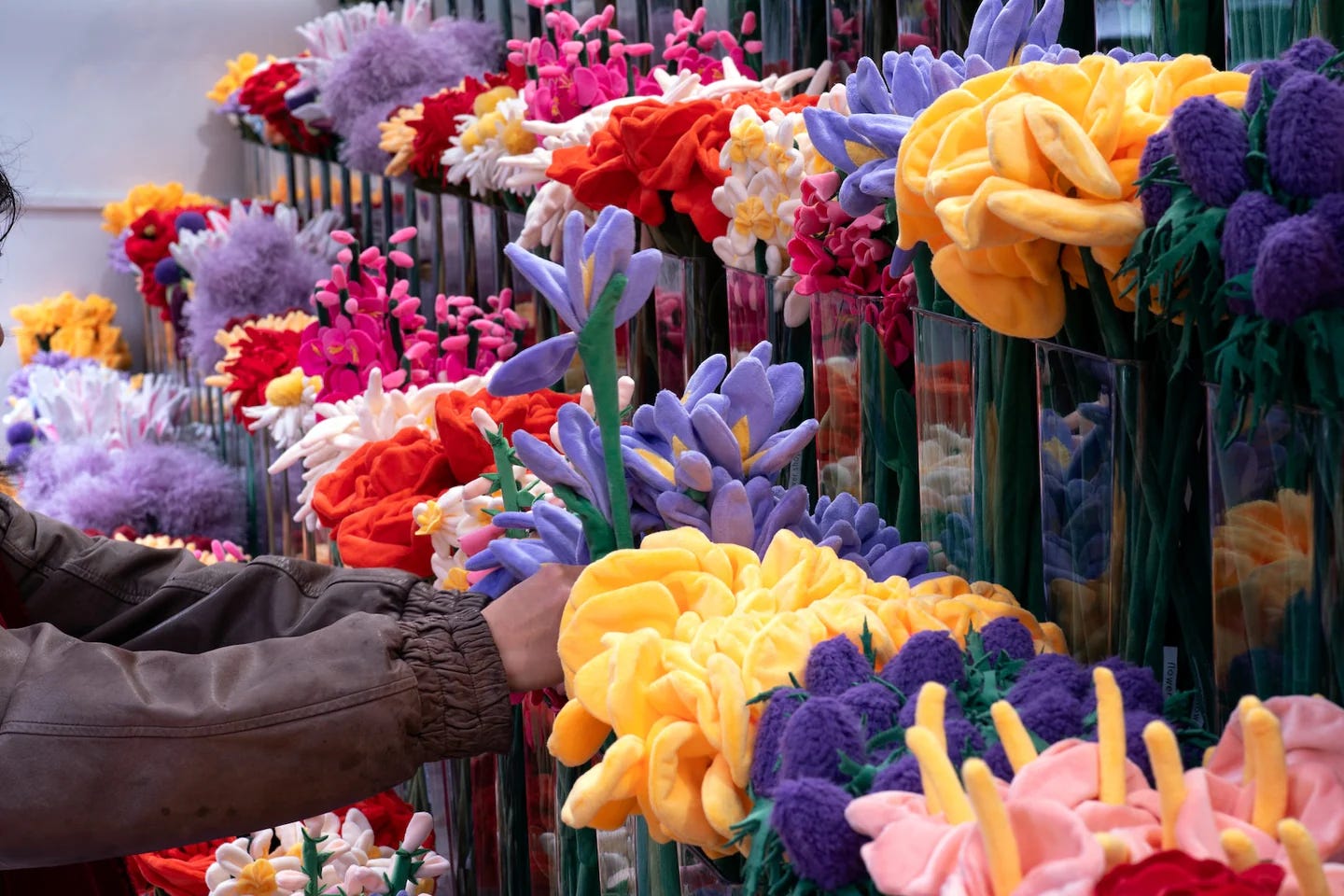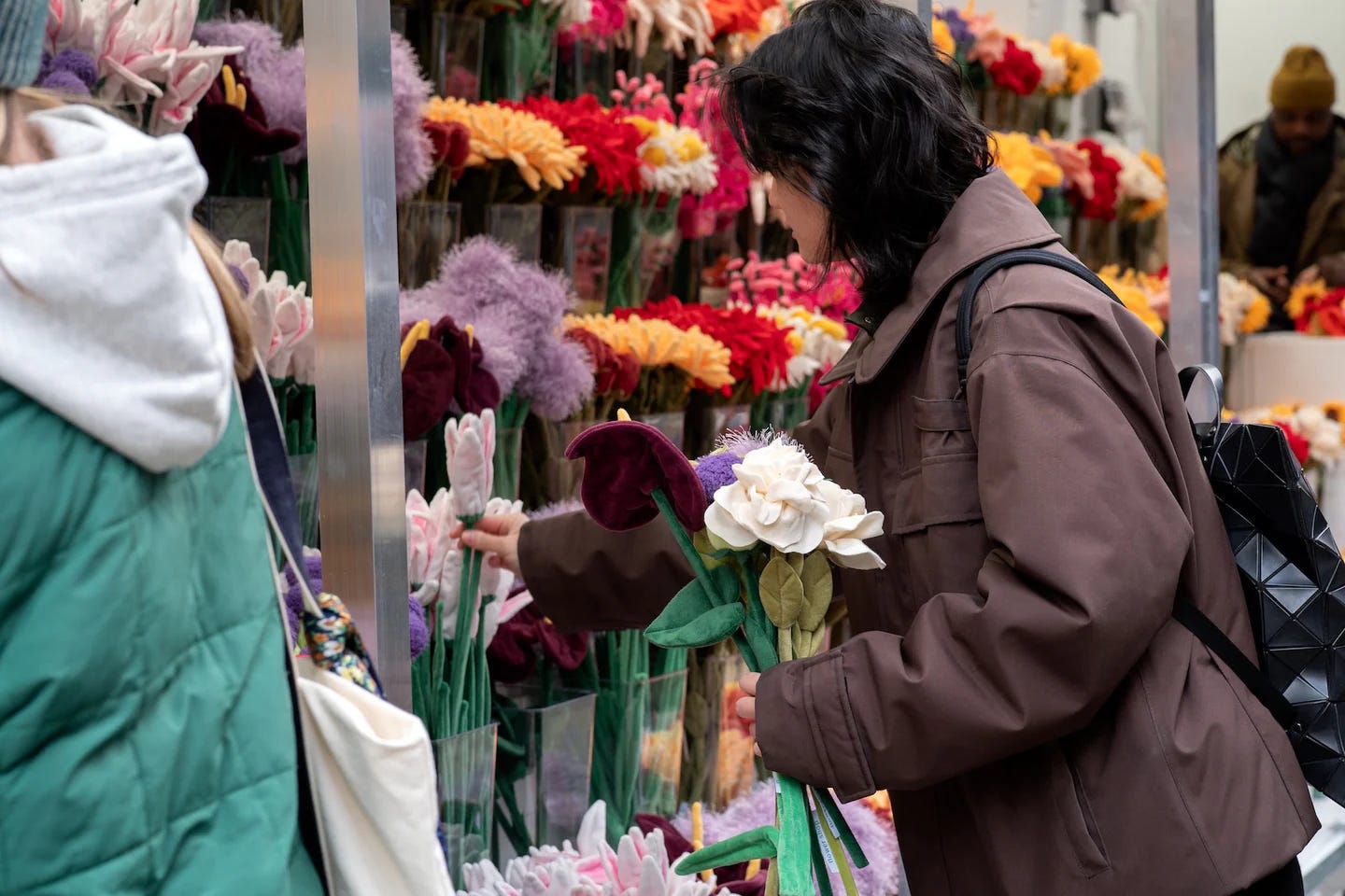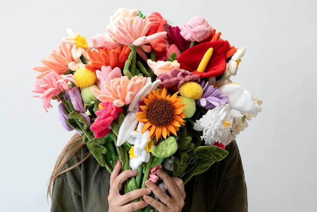 펠트 꽃은 원래 2024년에 ‘플라워 마켓’이라는 이름의 전시 겸 팝업에서 처음 대중에게 알려졌어요. 수천 송이의 펠트 해바라기, 장미, 데이지 등으로 가득했던 이 팝업은 SNS에서 큰 화제가 되었죠. 2025년에도 록펠러 센터에서 27종의 펠트 꽃을 선보이며 ‘플라워 마켓 2.0’의 문을 열었어요. 팝업에서의 폭발적인 인기에 힘입어 2025년 11월, 소호에 지금의 상설 매장을 열게 된 거예요.