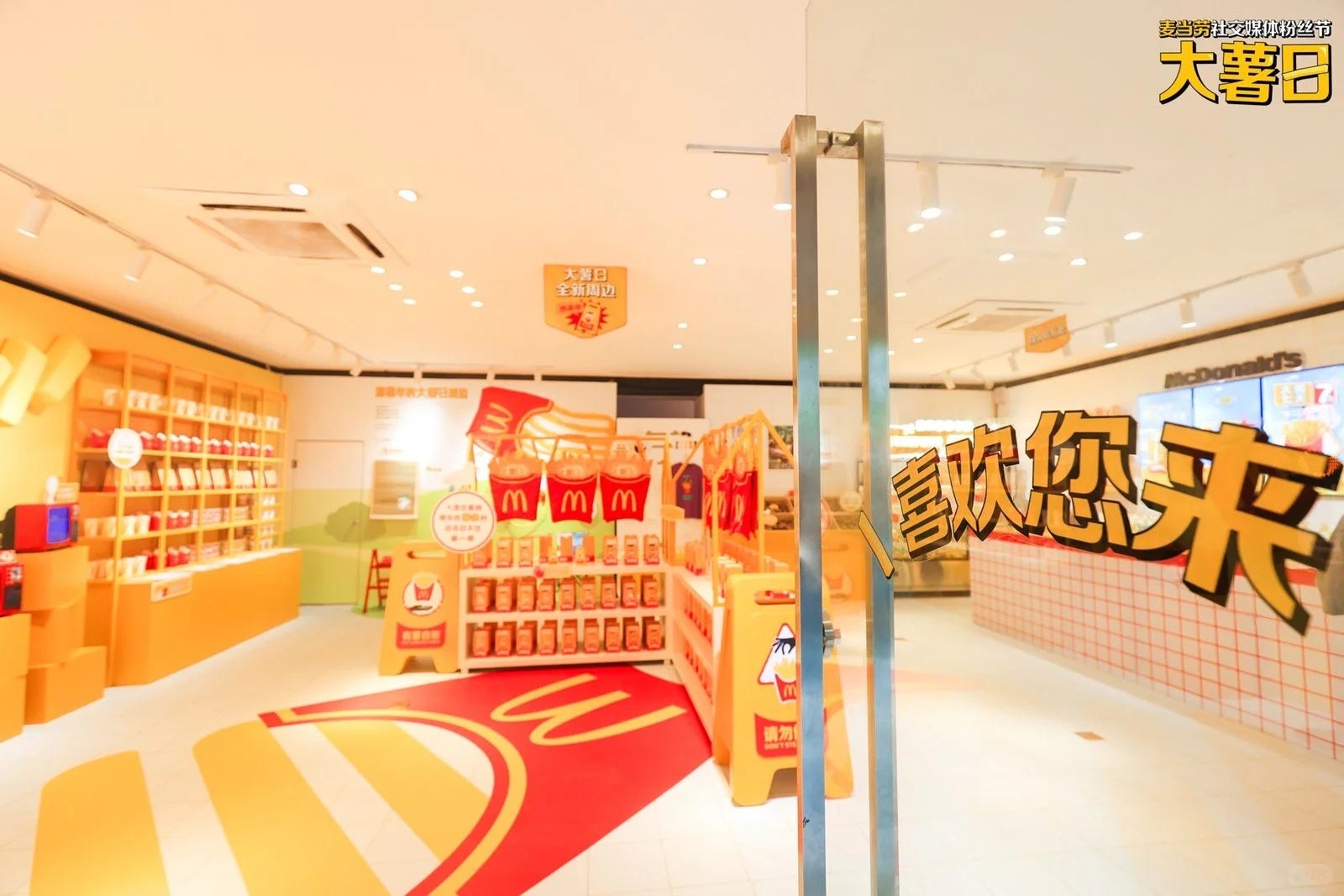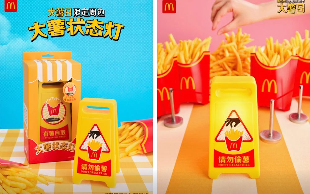 프로모션은 단순한 할인 행사에 그치지 않았어요. 상하이 징안구 한복판에 감자튀김 컨셉의 팝업스토어 ‘라지 감자튀김 편의점’까지 열었거든요. 이 편의점에서 특별한 건 뭐니뭐니해도 ‘라지 감자튀김 상태등’이에요.
