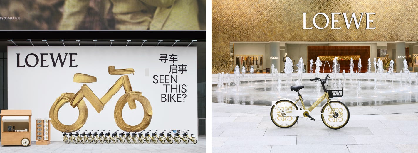 2024년에는 럭셔리 브랜드 로에베(LOEWE)와 협업해 한정판 금색 자전거를 선보이기도 했어요. 로에베 상하이 매장 외관에서 영감을 받아 디자인한 이 자전거는 고급스러운 이미지에도 불구하고 이용료가 단돈 1.5위안(약 300원)이에요. 이용자들은 하얼로 앱을 통해 참여 배지를 받고, 매장 앞 팝업 카페에서 전용 포스터와 무료 커피를 받을 수 있는 기회를 얻었죠. 단순한 교통수단을 ‘럭셔리 경험 채널’로 탈바꿈시키며, 브랜드 이미지를 한 단계 격상시키는 데 성공했어요.