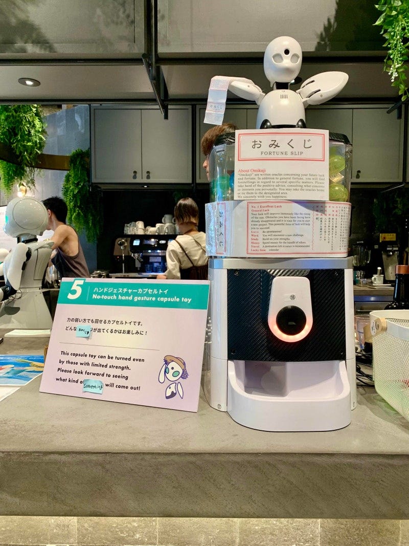 하지만 요시후지는 고객들이 이 해프닝까지 포함해서 카페를 즐겨주기를 기대하고 있어요. 로봇 개발은 에러나 트러블이야말로 터닝 포인트가 되거든요. 특히 이 카페에서 발생하는 실패는 인류 최초의 실패인 경우가 대부분인 만큼, 고객들이 이런 모습을 하나의 엔터테인먼트로 즐길 수 있는 장소로 만들고자 하죠. 이곳에서 고객들은 카페의 손님인 동시에 미래를 만드는 공개 실험의 참여자예요.