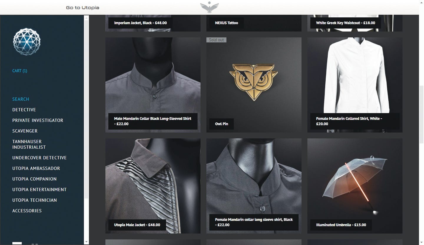 물론 시크릿 시네마가 준비물 가이드라인만 제공하고 빠질 리 없어요. 친절하게도 라이브 유토피아 사이트에서 캐릭터별로 그에 어울리는 관련 제품들을 판매하죠. 코트, 자켓, 타이, 우산, 안경 등의 소품을 각 캐릭터별로 20여 종씩 제안하는데 유토피아 앰배서더의 경우 소품들의 가격이 2~48파운드(약 3,000~7만 2,000원) 사이이며, 평균 가격은 20파운드(약 3만 원) 정도예요. 다른 캐릭터들도 유사한 수준이고요. 이를 통해 시크릿 시네마는 관객들이 영화관에 오기 전부터 추가 매출을 올릴 수 있어요. 관객들이 영화를 보러온 후부터 부가 수익이 생기는 보통의 영화관들과는 출발점부터 달라요.