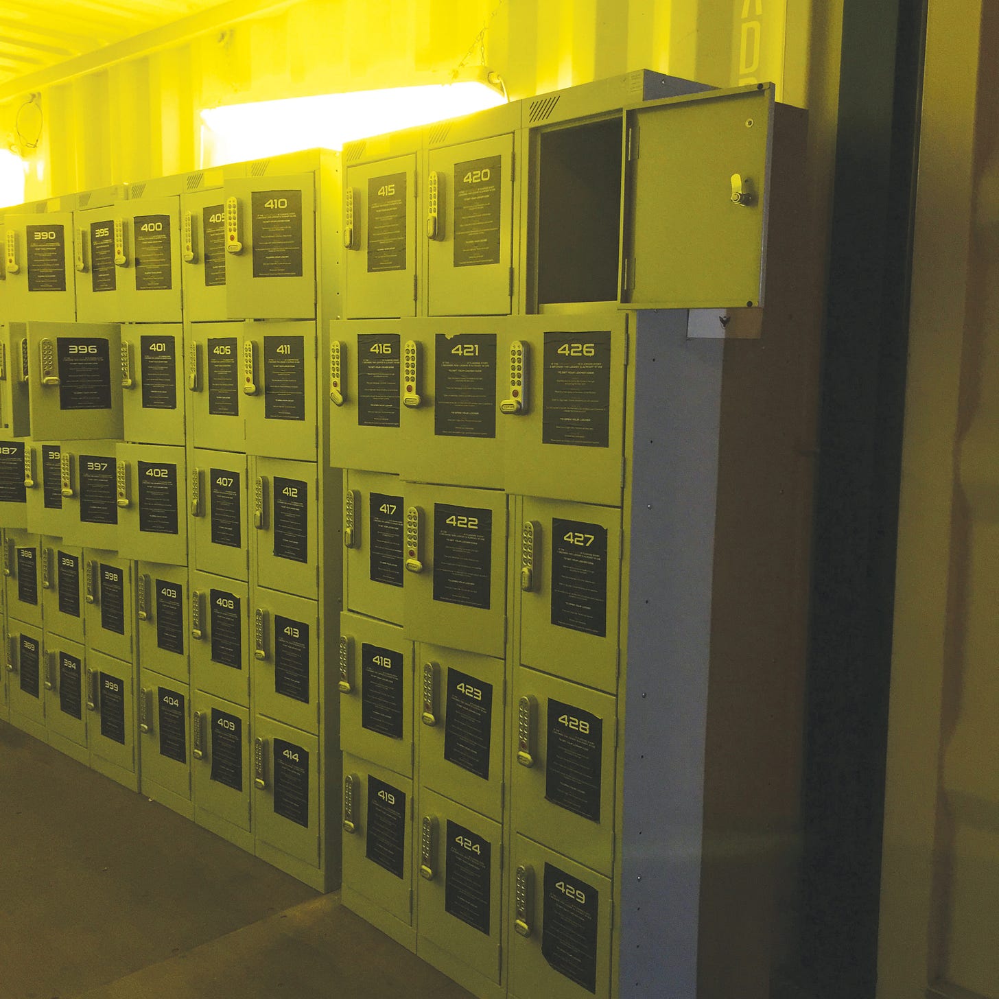 <블레이드 러너>에 국한된 설정이기 때문에 시크릿 시네마의 모든 영화의 입장 절차가 이와 같은 분위기는 아니에요. 하지만 영화와 관계없이 공통적으로 지켜야 하는 규칙이 있어요. 시크릿 시네마 영화관에서는 스마트폰을 사용할 수 없어요. 권고 사항 정도가 아니라 입장할 때 스마트폰을 밀봉하게 하죠. 대기업들이 기밀 유출 등의 이유로 방문객들의 스마트폰 사용을 제한하는 것보다 더 철저할 정도예요. 지적 재산권을 보호하려는 목적도 있겠지만 시크릿 시네마의 컨셉을 강화하고 관객들이 영화관에서의 경험에 집중할 수 있게 만들려는 목적이 더 커요.