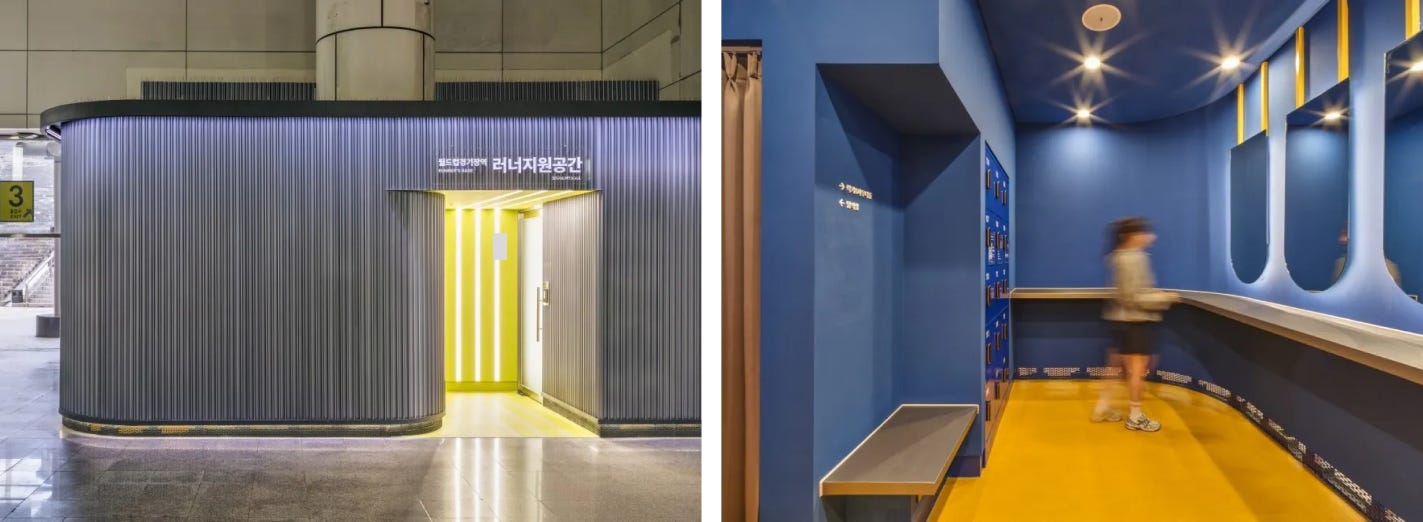 그러자 서울시가 나섰어요. 러너들이 자주 달리는 주요 코스에 위치한 지하철역에 ‘러너 스테이션’을 만들었죠. 지하철 역사 안에 탈의 공간과 보관함을 마련해, 운동을 위해 굳이 헬스장까지 가지 않아도 되도록 배려한 거예요. 2024년 5월 여의나루역을 시작으로, 이후 뚝섬역과 먹골역에 차례로 문을 열었어요. 2025년 10월에는 광화문역, 회현역, 월드컵경기장역까지 확대했고요. 노마드 피트니스를 장려하는 도시 인프라가 구축된 셈이에요.