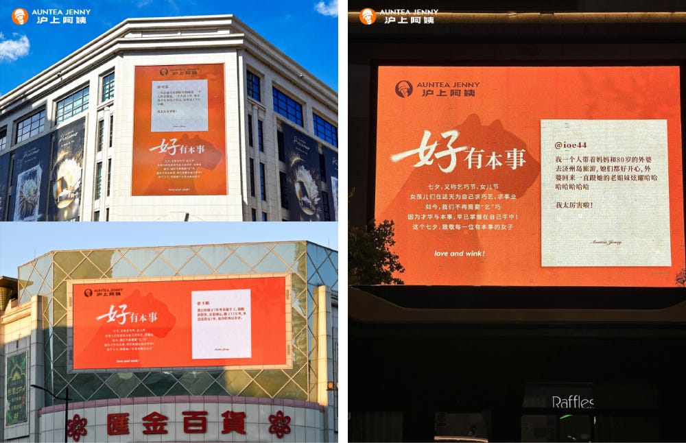 또 다른 흥미로운 사례는 중국 밀크티 브랜드 ‘후상아이(沪上阿姨)’예요. 후상아이는 칠석절을 가리키는 또 다른 이름인 ‘걸교절’에 주목했어요. 걸교절은 음력 7월 7일 밤에 여성들이 손재주가 좋은 직녀에게 솜씨를 달라고 기원한 것에서 비롯된 이름이에요. 후상아이는 역사적인 맥락을 살려 ‘재능 넘치는 여성’에 대한 찬사를 캠페인으로 풀어냈죠. 영상을 통해 매장 점원, 배달 기사, 수리 기사 등 각자의 현장에서 빛나는 여성들을 주인공으로 삼아 스스로의 노력으로 빛나는 모든 여성에게 경의를 표하고, 이를 상하이, 청도 등에서 대형 스크린으로 송출했어요.