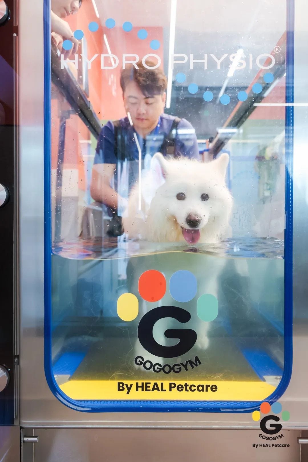 고고짐은 반려견이 잘 인식한다고 알려져 있는 밝은 파란색과 노란색 위주로 꾸며져 있어요. 300㎡(약 90평)의 공간이 크게 피트니스 존, 스파 및 재활 존, 마사지 및 테라피 존, 반려동물 용품 리테일 존으로 채워져 있죠. 러닝머신과 체형별 보조 장비가 배치돼 있고, 수영장과 수중 러닝머신, 전용 마사지실, 레이저 치료실까지 있어요. 리복(Reebok)과 협업한 반려동물 스포츠 웨어, 관절 보조 제품 등이 진열돼, 운동과 건강 관리가 자연스럽게 연결되죠.