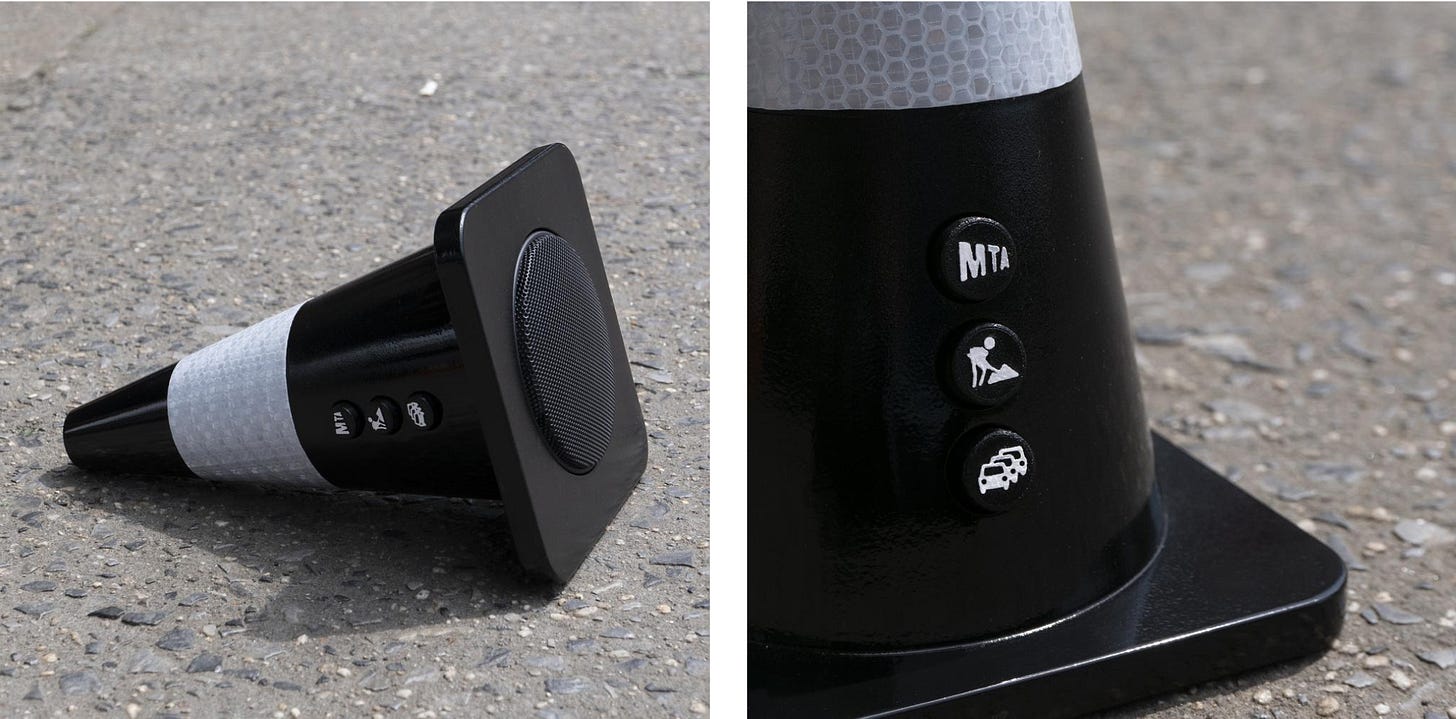 뉴욕의 기념품을 만드는 과제를 받았을 때 가장 먼저 떠오르는 건 뭘까요? 스카이라인, 자유의 여신상 등 눈에 보이는 요소들일 거예요. 하지만 스페인 출신의 디자이너 ‘블랑카 코디나(Blanca Codina)’는 시각이 아닌 청각에 주목했어요. 교통 소음, 지하철 소음, 심지어 공사 소음까지 뉴욕에서 들을 수 있는 소음을 녹음했죠. 그리고 이 혼돈의 현장을 조용히 지켜보는 트래픽콘 모양의 스피커에 소음을 담았어요. 뉴욕 밖에서도 진정한 뉴욕의 소리를 골라서 들을 수 있는 기념품이에요.
