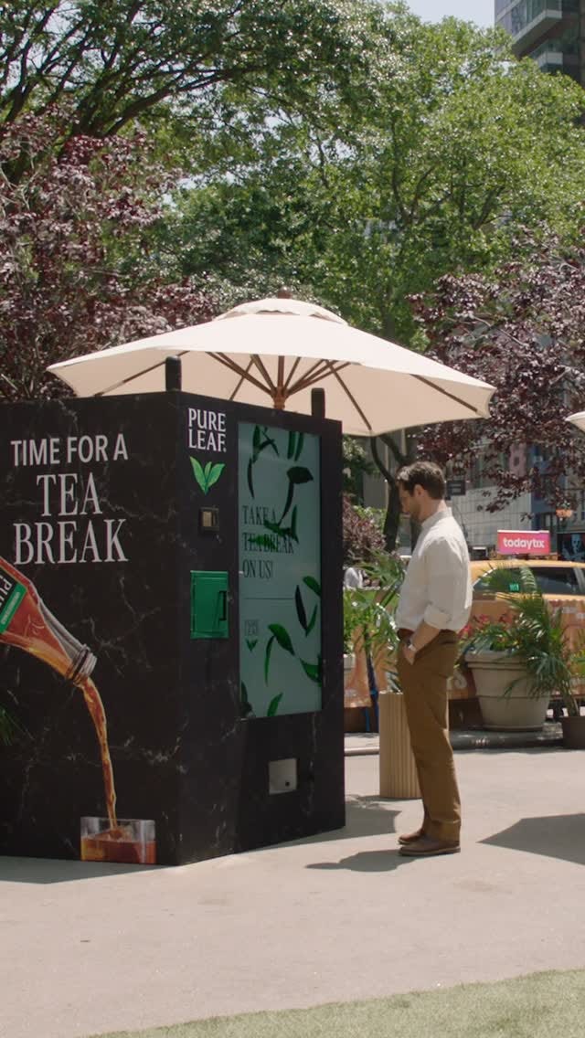 북적이는 뉴욕 맨해튼 한복판에 ‘티 브레이크 머신(Tea break machine)’을 설치한 건데요. 이 자판기는 지나가는 사람들에 퓨어 리프 티의 아이스 티를 내어줘요. 그런데 이 무료 아이스 티를 마시기 위해서는 단 한 가지 조건이 있죠. 동전이나 지폐 대신 ‘스마트폰’을 제출해야 해요.