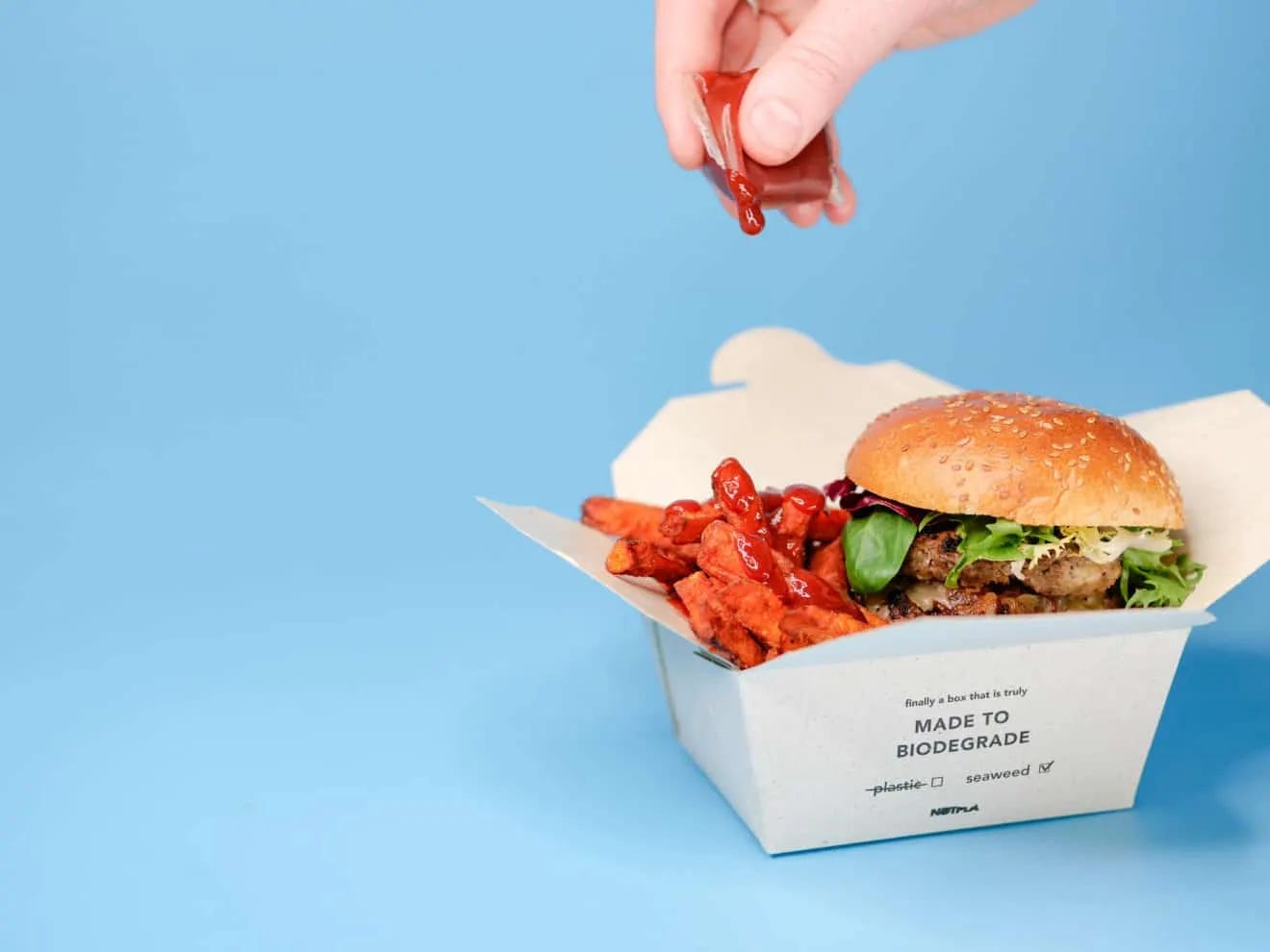 이후 오호는 물병에서 더 나아가 플라스틱 없는 포장재를 만드는 브랜드로 성장했어요. ‘낫 플라스틱(Not plastic)’의 줄임말, ‘낫플라(Notpla)’라는 이름으로요. 플라스틱이 쓰이는 건 액체를 담는 용기뿐만이 아니니까요. 대표적인 제품은 테이크아웃용 식품 용기인데요. 플라스틱이나 합성 소재로 코팅된 기존 테이크아웃 용기와 낫플라는 환경과 인간에 유해한 물질이 전혀 쓰이지 않아요. 대신 낫플라만의 해조류 코팅으로 마감해 생분해되는 건 물론, 외관, 질감, 기능은 기존 용기들과 견주어도 손색이 없죠.