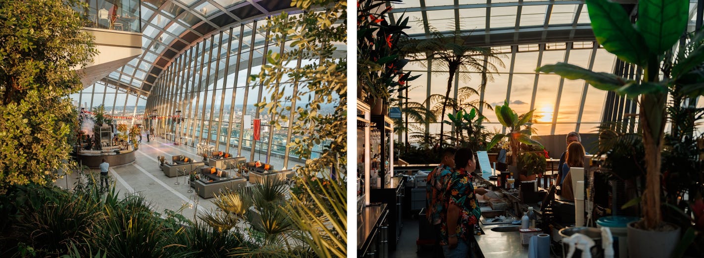 그런데 부동산 가격이 높은 런던 한복판, 그것도 전망이 가장 좋은 고층 공간을 왜 무료로 운영할까요? 이유는 런던의 도시계획에 있어요. 고층 상업 빌딩을 짓기 위해선 공공을 위한 공간을 제공해야 한다는 조항이 있거든요. 그렇게 만들어진 곳이 스카이 가든인거죠. 그렇다면, 이 공간은 어떻게 유지되고 있을까요? 스카이 가든은 공공성과 수익성을 함께 챙기며 공간을 가꿔나가고 있어요.