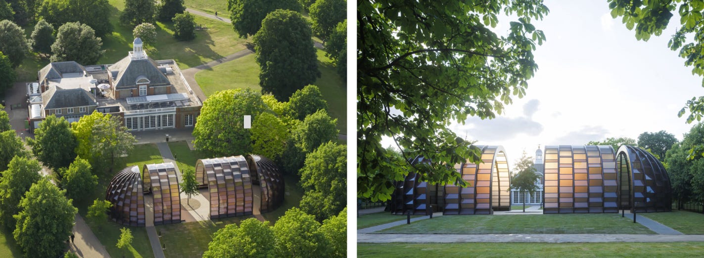 두 번째는, ‘서펜타인 파빌리온’(Serpentine Pavilion)이에요. 켄싱턴 가든에 위치한 서펜타인 갤러리는 매년 여름마다 세계적인 건축가를 초청해 야외에 파빌리온을 설치해요. 올해는 방글라데시 출신 건축가인 마리나 타바숨이 ‘시간의 캡슐’이라는 목재 구조물을 선보였어요. 전시는 6월 6일부터 10월 26일까지, 무료로 공개하는데요. 매년 새로운 건축가의 작품을 기대하는 재미, 런던의 여름에 누릴 수 있는 또 다른 즐거움이에요.