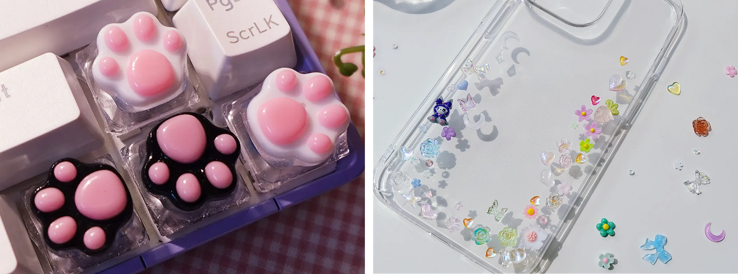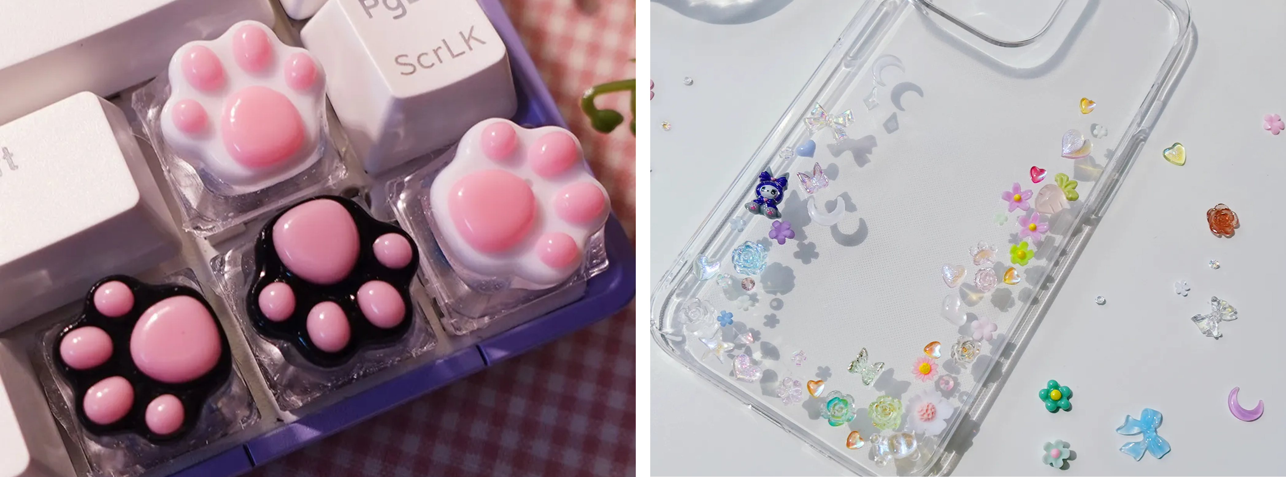 또 다른 꾸미기는 일상에서 가장 가까이 있는 디지털 기기예요. 휴대폰 케이스를 꾸미는 ‘케꾸’, 기계식 키보드의 키캡을 교체하는 ‘키꾸’가 대표적이죠. 모두가 비슷하게 생긴 기계를 쓸수록, 이런 꾸미기의 수요가 더 커져요. 성능만으로는 더 이상 차이를 만들기 어려워졌기 때문이에요.
