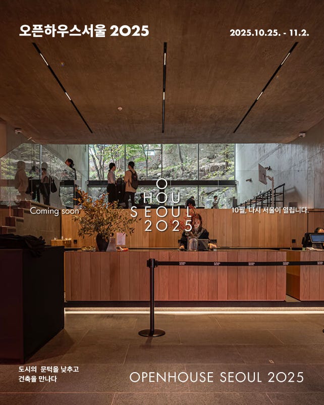 2025년 오픈하우스서울은 10월 25일부터 11월 2일까지 9일간 진행될 예정인데요. 작년만 해도 무려 146곳의 건물이 개방되었고, 일부 프로그램은 최대 87:1의 경쟁률을 기록할 만큼 뜨거운 관심을 모았어요. 추첨으로 선정된 시민들은 “사진으로만 보던 건물에 직접 들어서니 빛과 스케일이 전혀 다르게 다가왔다”라고 소감을 밝힌 바 있어요. 단순히 보는 것을 넘어, 건물을 ‘경험’하게 된 거예요.