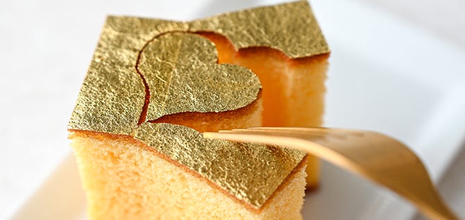 사연은 이래요. 카타누키야의 모회사는 이시카와현에 있는 노포 제과 업체, ‘부도의 숲’이에요. 이곳의 시그니처 메뉴 중 하나는 금박을 입힌 카스테라인데요. 고급스러운 외형만큼, 단면의 완성도가 중요했죠. 그래서 과감하게 고가의 ‘워터젯 커터’를 들이게 됐어요. 워터젯 커터는 칼날 대신 고압의 물줄기를 사용하는 장비예요. 단면이 뭉개지지 않고 깔끔하게 자를 수 있는 장점이 있죠.