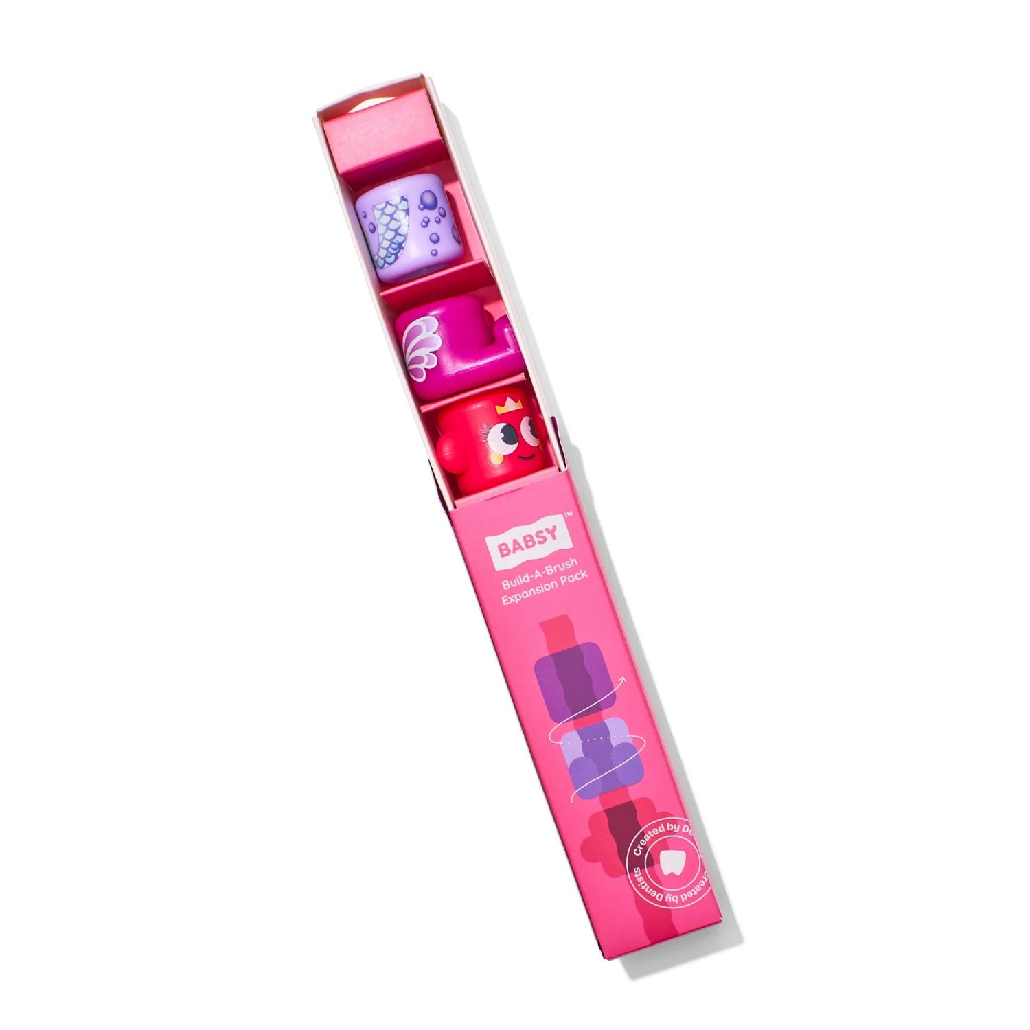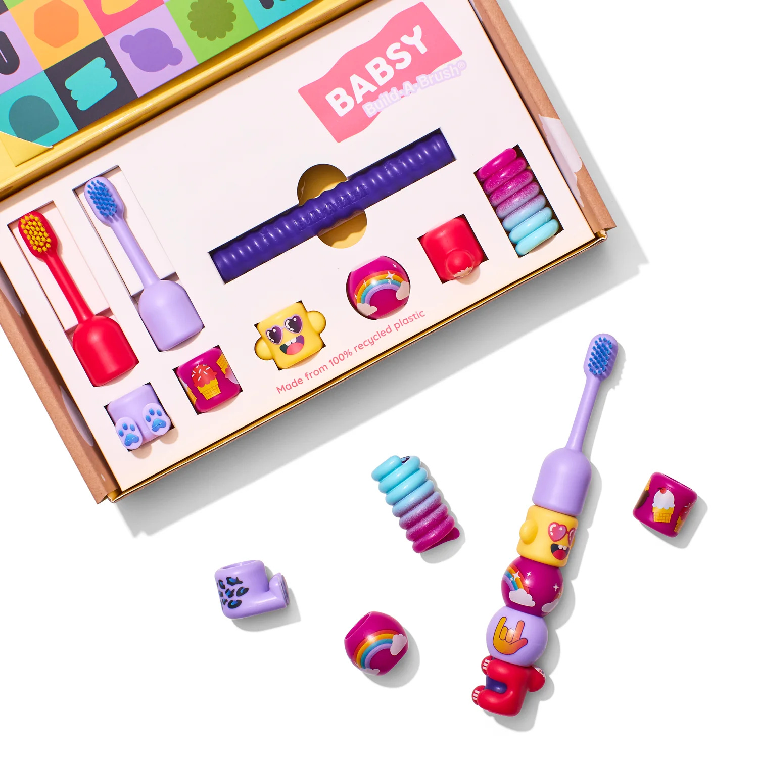 반면 밥시는 지루한 양치질을 ‘즐거운 놀이’로 바꾸는 데에 집중했어요. 그래서 칫솔 디자인을 마치 레고처럼 아이들이 맘대로 가지고 놀 수 있는 장난감처럼 디자인했죠. 밥시의 대표 제품인 ‘빌드 더 브러쉬(Build-A-Brush)’는 2개의 교체형 브러시 헤드, 1개의 나선형 코어, 그리고 6개의 비트로 구성되어 있는데요. 아이들이 비트를 골라 나선형 코어에 돌려 끼울 수 있도록 디자인되어 있어요.