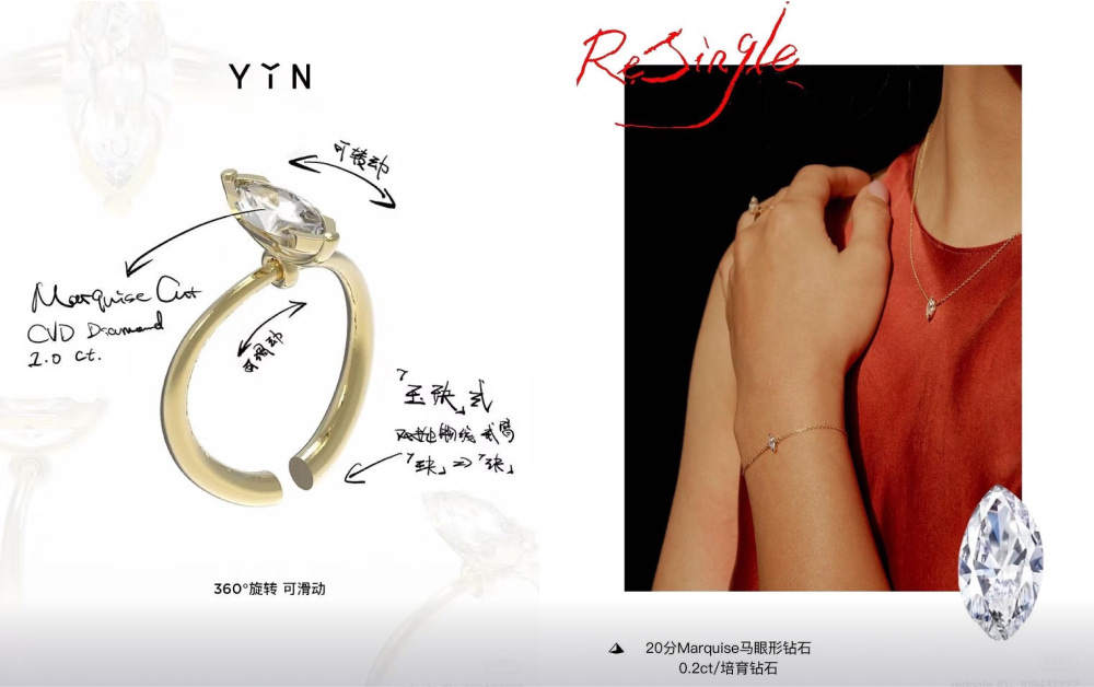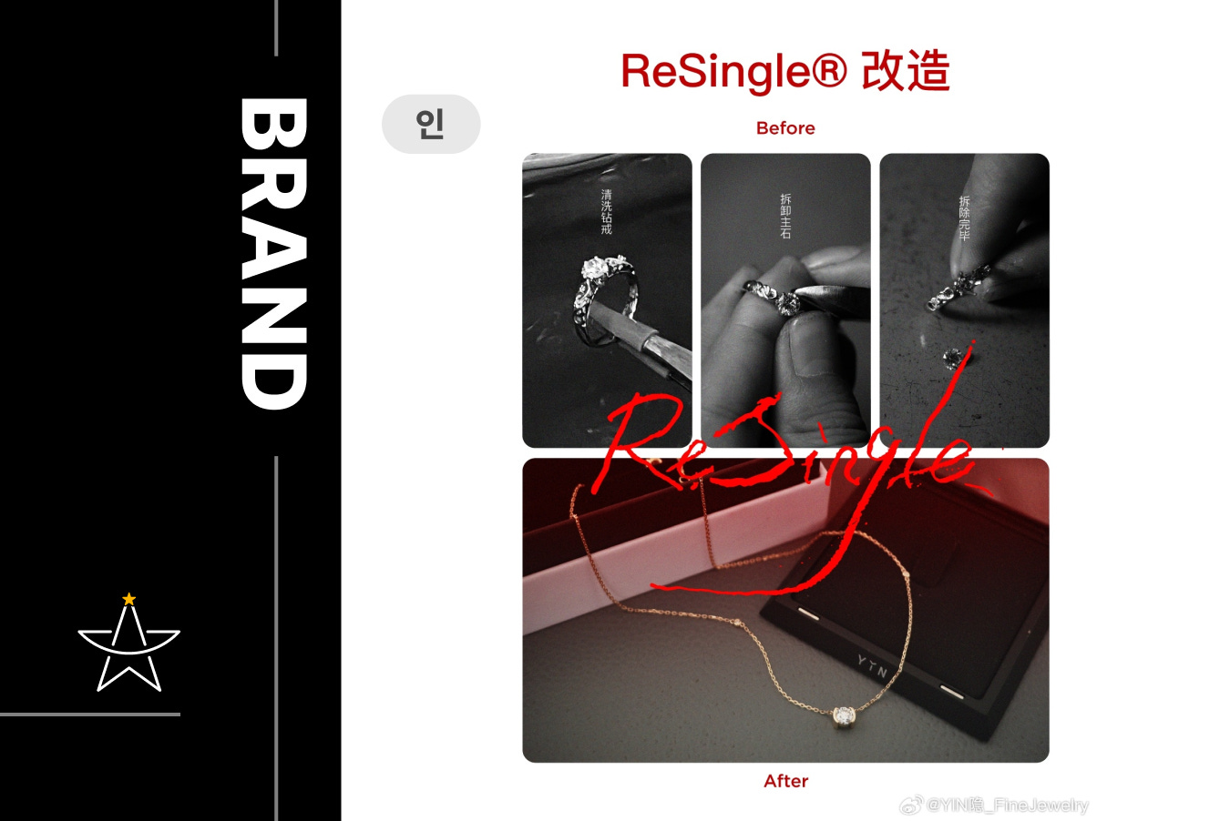 인은 이혼을 겪은 사람들이 결혼하는 사람과 마찬가지로 존중과 사랑을 받고, 기념할 자격이 있다고 생각했어요. 그래서 2023년, ‘리 싱글(Re Single)’이라는 이름으로 결혼할 때 받았던 다이아몬드 반지를, 이혼을 기념하는 반지로 다시 디자인하고 개조하는 서비스를 시작했어요. 그리고 2024년에는 본격적으로 리 싱글 시리즈 주얼리를 출시했죠.
