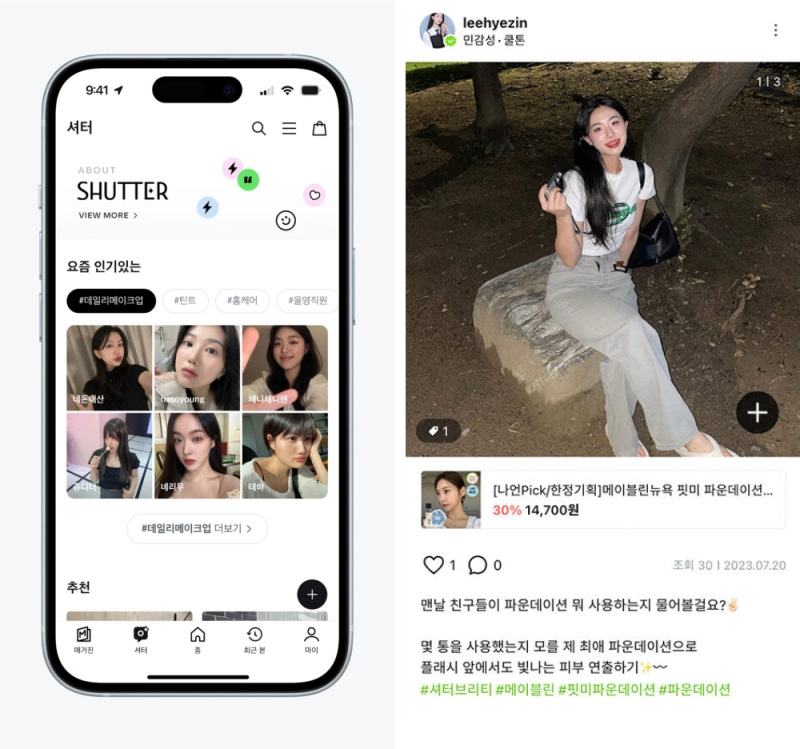 올리브영은 모바일 앱에 SNS 기능을 하는 셔터(Shutter)를 도입해 이 문제를 해결하고 있어요. 올리브영 회원이라면 셔터 탭에 들어가 본인의 피부톤과 피부 타입을 밝힌 뒤 화장품과 메이크업 정보를 공유해 뷰티 인플루언서로 거듭날 수 있고요. 게시물을 올리지 않더라도 본인과 같은 피부톤이나 피부 타입인 사람들이 어떤 화장품을, 어떻게 쓰는지 알 수 있어요. 게시물을 보고 끌리는 상품이 있다면 바로가기 버튼을 통해 상품 페이지로 단숨에 이동할 수 있죠.