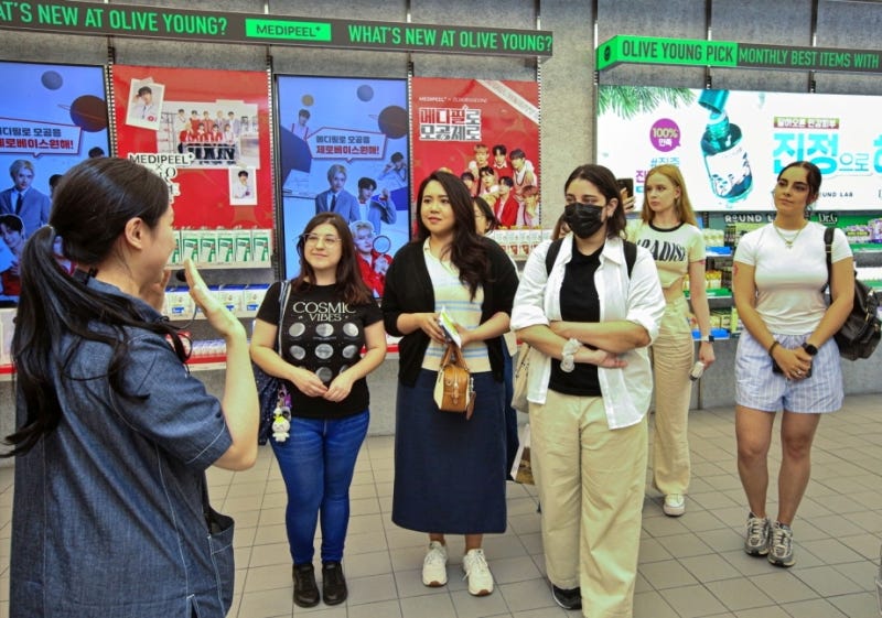 경복궁과 덕수궁, 남산 타워, 광장시장. 외국인이 한국에 여행 오면 꼭 들르는 관광 코스인데요. 요즘엔 이 코스에 올리브영도 포함됐어요. 최근 올리브영이 외국인 고객을 대상으로 진행한 설문조사에 따르면 응답자의 85%가 한국에 오면 올리브영에 방문한다고 대답했어요. 틱톡이나 인스타그램에선 한국 관광 필수 코스로 올리브영을 언급하는 콘텐츠도 많이 찾아볼 수 있죠.
