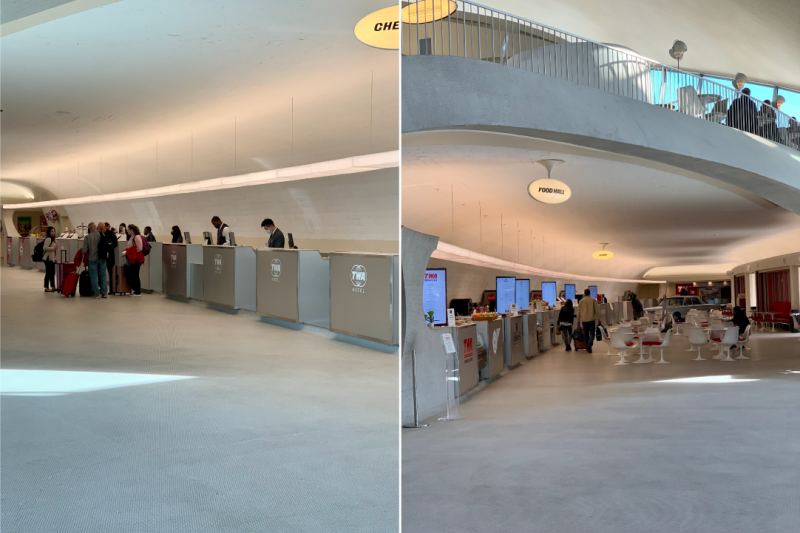 그렇다면 TWA 호텔은 1960년대의 분위기를 제공하는 것 외에 또 어떤 경험적 요소를 제공하는 걸까요? 호텔 곳곳을 돌아다니면서 TWA 호텔이 제공하는 경험적 요소를 체험해 볼게요.